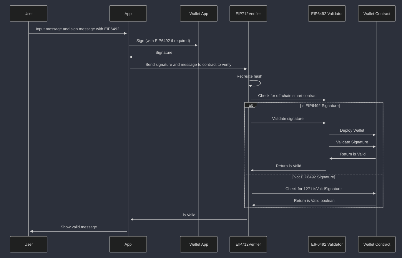 sequence flow for eip712 eip1271 verfying and validating signatures
