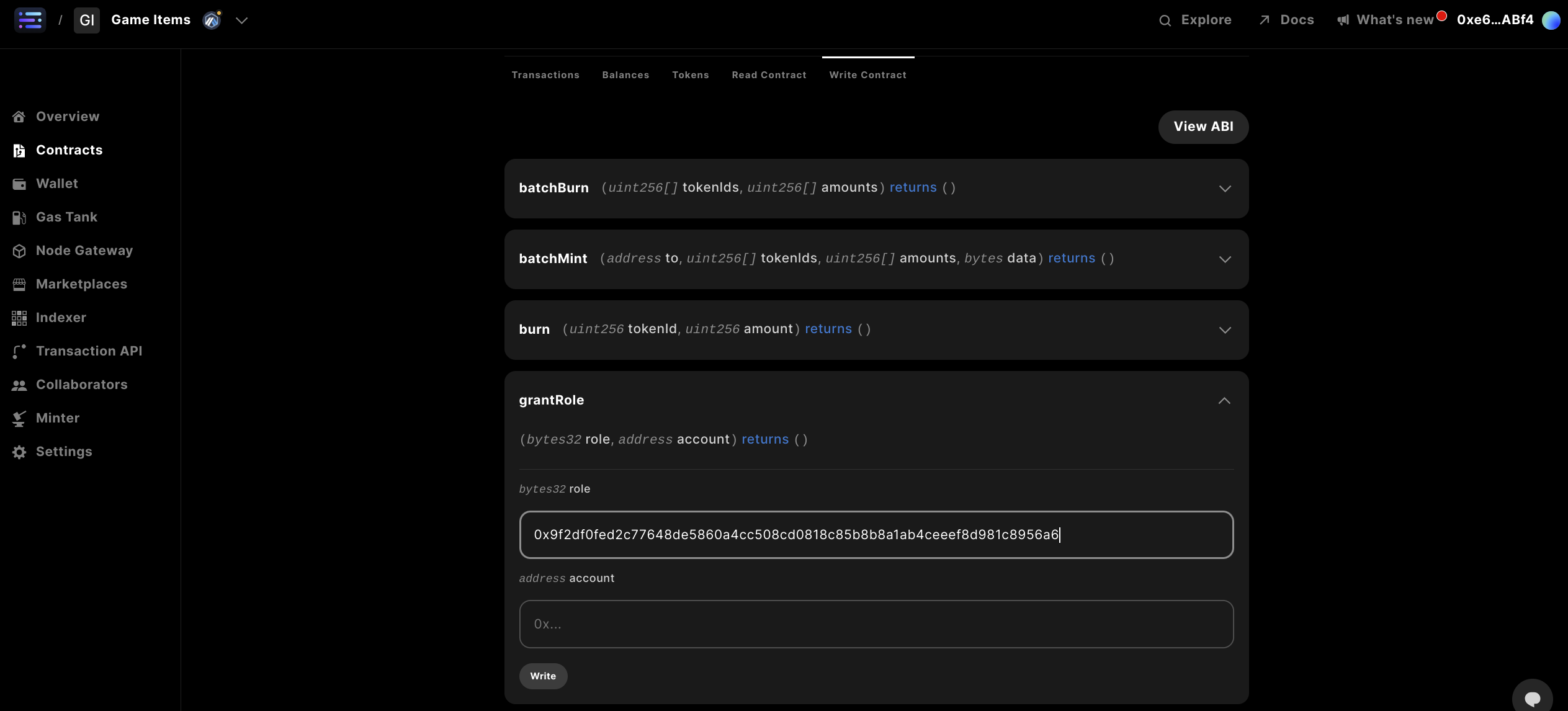 Next, head to the Write Contract section